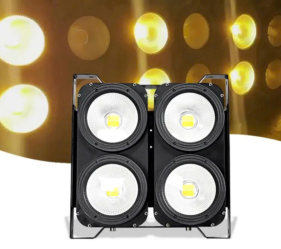 - Đóng gói bao gồm: 1 chiếc đèn khán giả Blinder 4x100W LED COB; 1 dây cáp nguồn; 1 dây cáp tín hiệu DMX; 1 sách hướng dẫn sử dụng