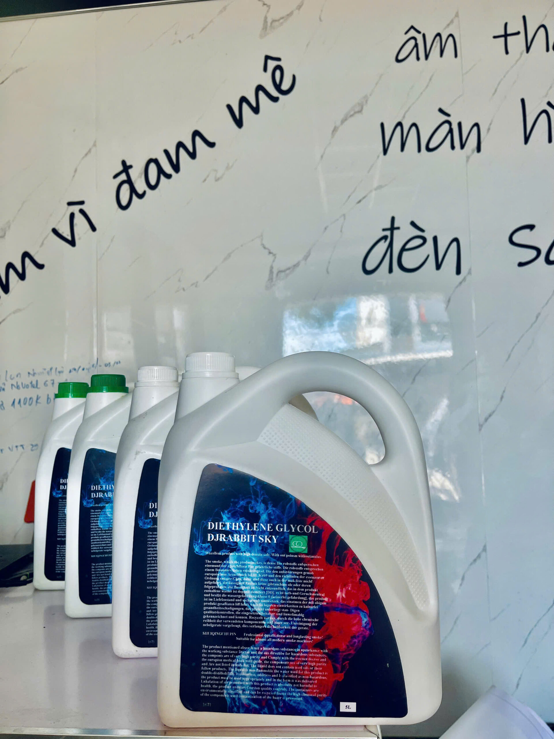 Dầu tạo khói DIETHYLENE GLYCOL DJRABBIT SKY Can 5L, nước khói thơm. Dung Dịch máy khói sân khấu, tiệc cưới.